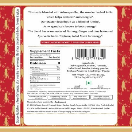 • 🌿 Ayurvedic Vitality Tea – Strengthen, Soothe & Restore 🌿 🧘 Adaptogenic Powerhouse – Ashwagandha & Brahmi help reduce stress and enhance mental clarity