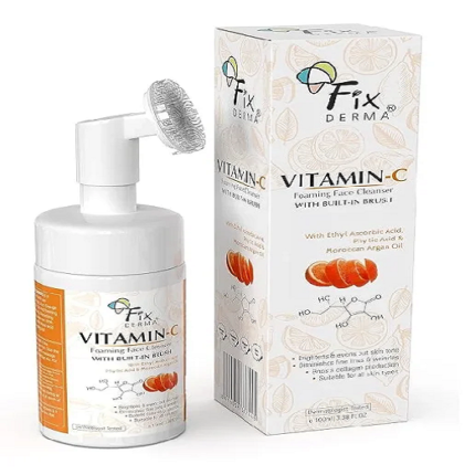 Fixderma 2% Vitamin C Face Wash, Foaming Face Cleanser with Brush, Face wash for Women & Men, Evens skin tone, Reduces fine lines & wrinkles, Exfoliates the skin – 100ml