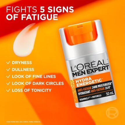 L’OREAL PARIS Men Expert Hydra Energetic Face Cream With Vitamin C + Protein, 24Hr Non-Greasy Face Moisturizer For Men, For Dry And Dull Skin, Reduces Look Of Fine Lines & Dark Circles, 50Ml