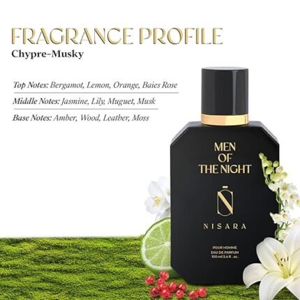 Nisara Men of the Night Perfume for Men – 100 ml | Long Lasting Eau De Parfum | Premium Perfume | Citrus-Chypre-Musky Fragrance | With Bergamot, Lemon, Orange, Amber, Wood, Leather| EDP Scent for men | Premium Perfume