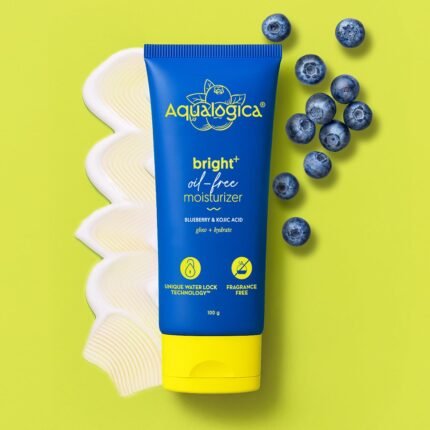 Aqualogica Bright+ Oil-Free Moisturizer with Blueberry & Kojic Acid (100g) Lightweight & Non-Sticky | Brightens & Evens Skin Tone | Fades Dark Spots & Pigmentation | Deeply Hydrates| For All Skin Types | For Men & Women
