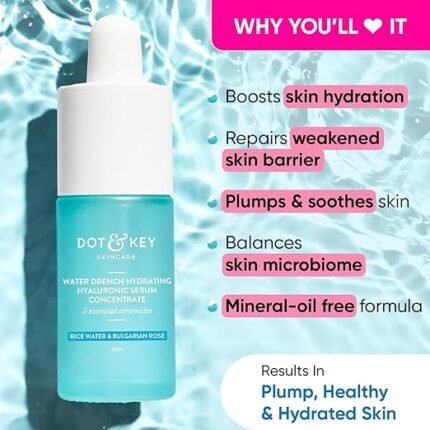 Dot & Key Hydrating Hyaluronic Acid Serum With Vitamin C + E | For Plump, Glowing Skin | Face Serum for Dry Skin, Oily & Normal Skin | With Ceramide & Acai Berry | 30ml
