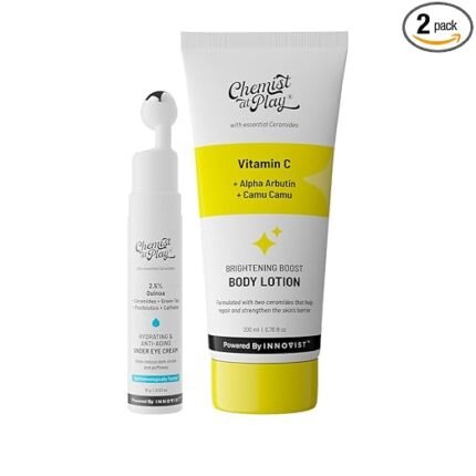 Chemist At Play Under Eye Cream with 2% Revital Eye & Quinoa Extract | For Reducing Dark Circles, 15g + Brightening Body Lotion with Ceramides | Alpha Arbutin, Camu Camu & Vitamin C 200ml