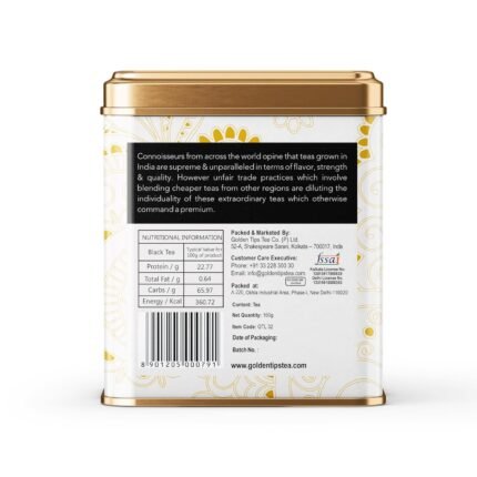 - Packaging: tea is tightly sealed in a quality package and then packed in an imported tin can with Golden Tips seal. This makes the tea stay fresh for long time