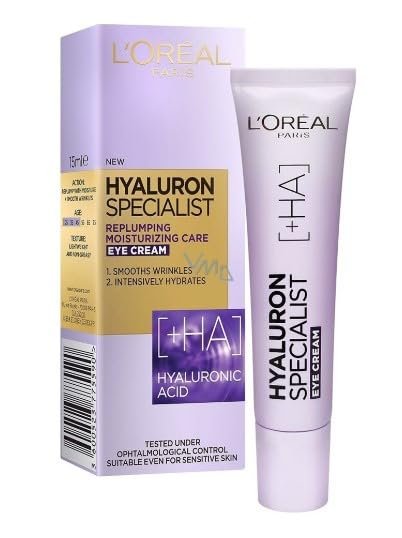 L’Oréal Paris Hyaluron Specialist Replumping Eye Cream with Hyaluronic Acid – Deep Hydration, Anti-Aging, Wrinkle Smoothing & Firming Care for All Skin Types