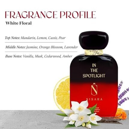 Nisara In the Spotlight Perfume For Women 100 ml | Girl Long Lasting Eau De Parfum | EDP Scent Spray |White Floral | With Vanilla, Musk & Mandarin, Pear, Lavender notes I EDP Scent for Women | Premium Perfume