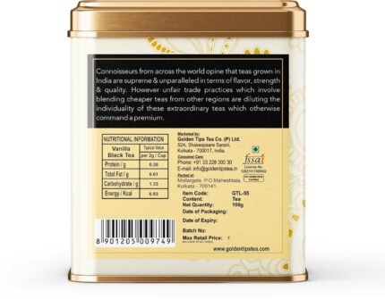 Golden Tips Vanilla Flavour Loose Leaves Black Tea Tin Can (100 Gram, 50 cups)