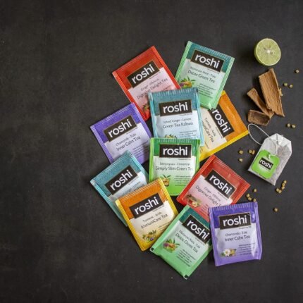 Roshi Assorted Herbal & Green Tea Collection | (25 Tea bags) | Chamomile Tea, Immunity tea, Digestion support Tea, Relaxing, Detox Spearmint Green tea, Simply Slim Green Tea | Green Tea Sampler Trial Pack with 5 Exotic Flavors | Assortment of Wellness in one Gift Box