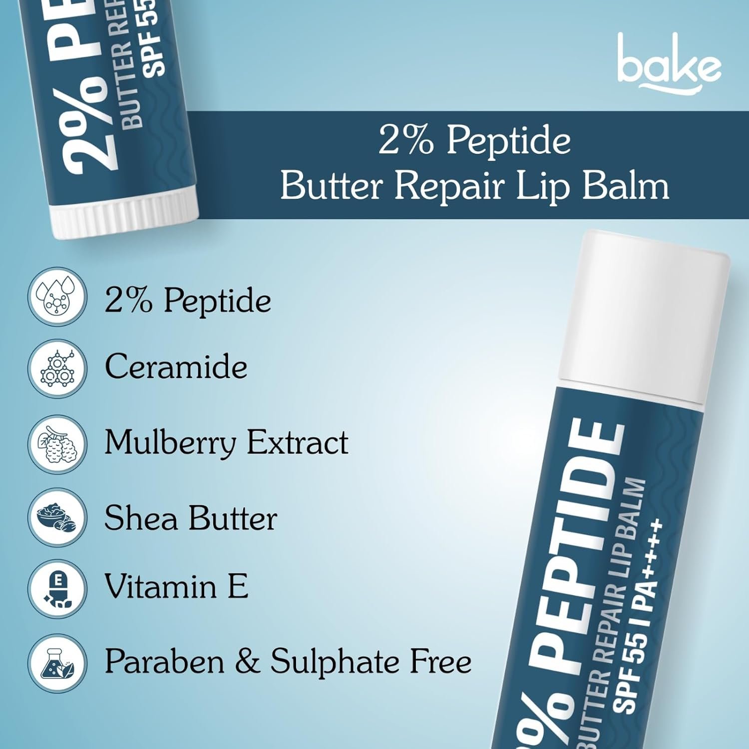 BAKE 2% Peptide + Ceramide Butter Brightening Lip Balm Spf 55 Pa++++ With 24 Hour Moisturization,For Dark,Pigmented,Dry,Flaky & Chapped Lips,Repairs & Nourishes Lips,For Men & Women – 5G,Light Green