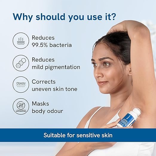 • REDUCES BODY ODOUR: A revolutionary approach to body odor! AHA BHA-based solution that eliminates odor-causing bacteria that masks odor all day long. Regular use helps in hydrating dry underarms & reduces pigmentation.