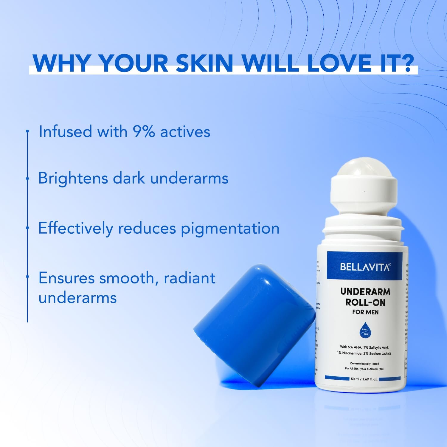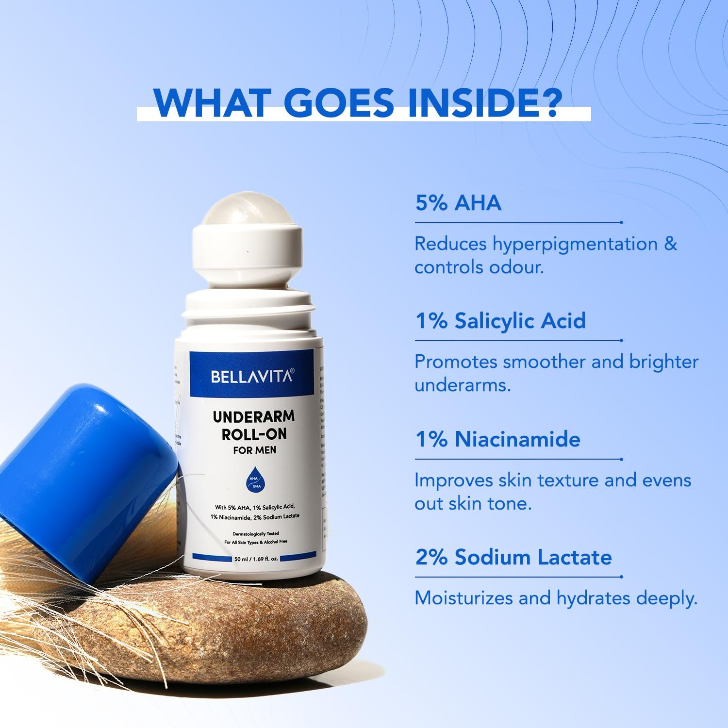 - ✨ Advanced 4% AHA BHA Formula: Powered by 2% Lactic Acid, 1% Mandelic Acid, and 1% Salicylic Acid, this roll-on gently exfoliates, smoothens texture, and promotes brighter, even-toned underarms.
