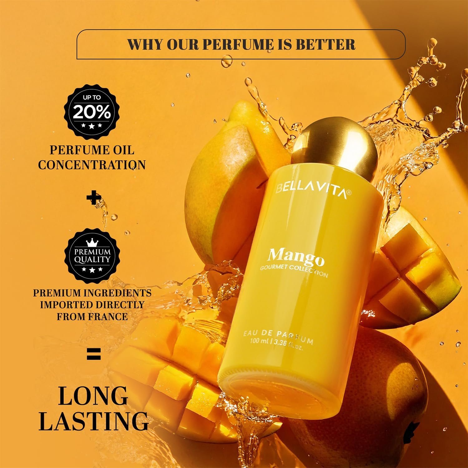 BELLAVITA Gourmet Collection Mango | Long Lasting Perfume for Man and Woman | EDP 100ml | Floral, Woody, Sweet Premium Unisex Fragrance for Men and Women