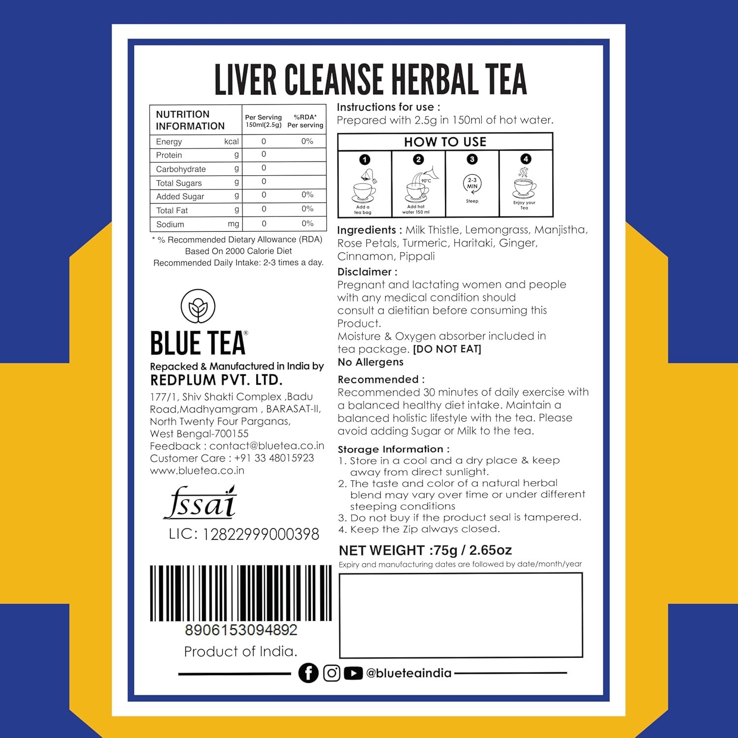 BLUE TEA Liver Cleanse 30 Tea Bags Plant Based Helps with Fatty Liver Detox