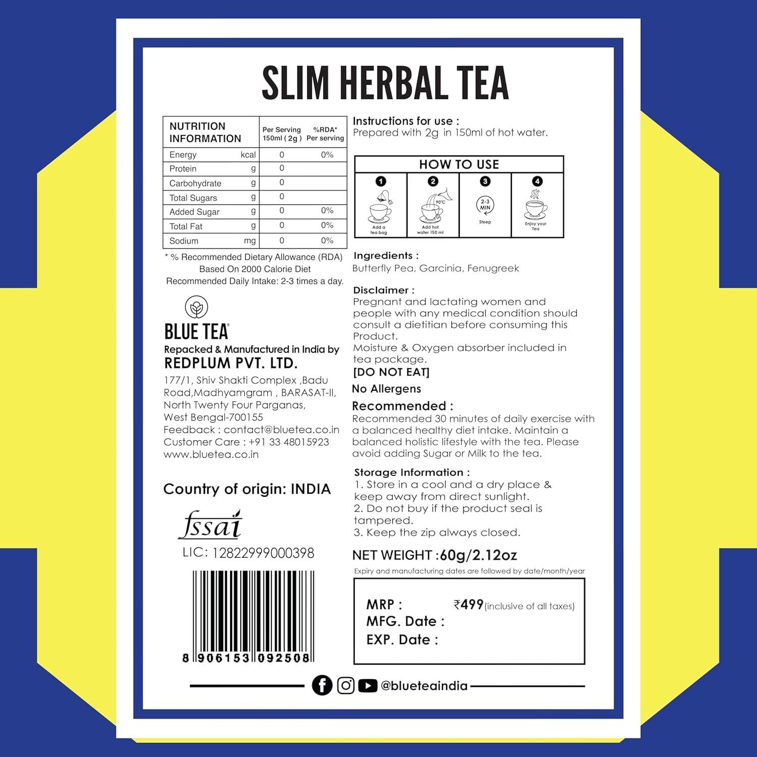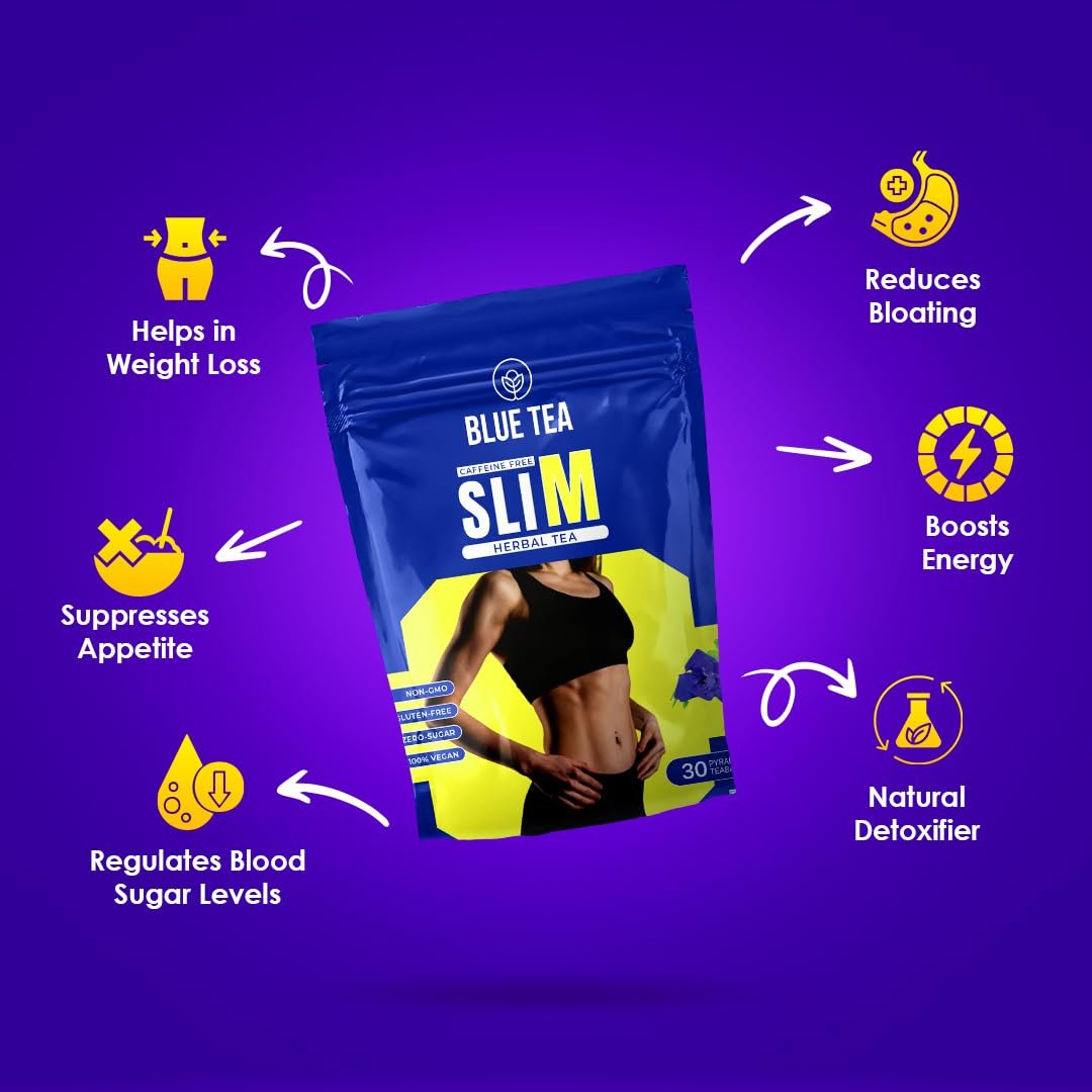 BLUE TEA Slimming Tea 30 Tea Bag Plant Based Get Slimmer Tummy Weight Management