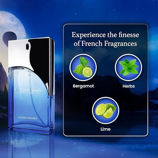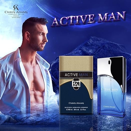 Chris Adams Eau De Parfum – Active Man 100ml | Aromatic Floral Woody Scent | Premium Long Lasting Fragrance Spray | Daily Use Perfume For Men | Ideal Gift For Men | Made in U.A.E