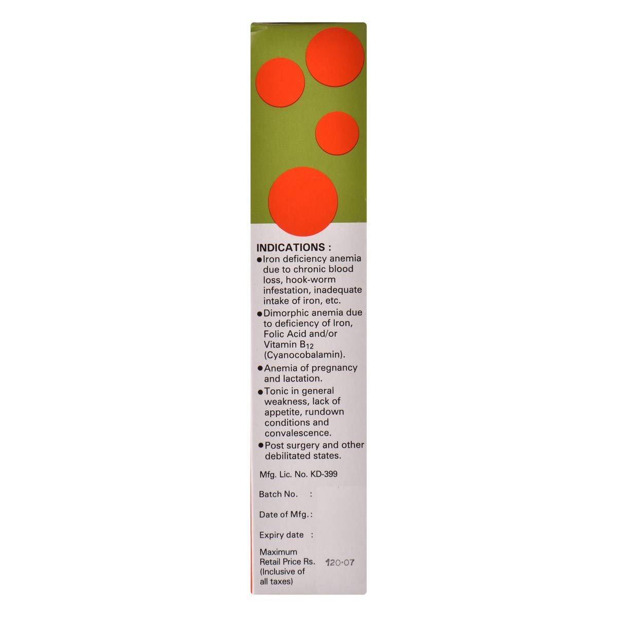 • Composition: Each 15 ml (one tablespoonful) contains: Ferric Ammonium Citrate IP 160mg (equivalent to Elemental Iron 32.8mg).Cyanocobalamin IP 7.5 mcg. Folic Acid IP 0.5mg, Alcohol (95%) IP 0.85 ml.