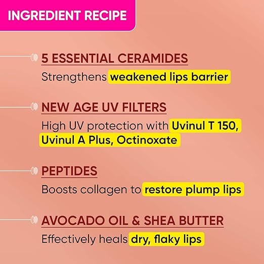 Dot & Key Ceramide & Peptide Barrier Repair Lip Balm SPF 50, PA+++ | Warm Nude | UVA/UVB Lip Protection | Soft Tinted Lip Moisturizer | Boosts Collagen & Instantly Plumps Lip | Prevents Pigmentation| Lip Balm for Women | 10gm
