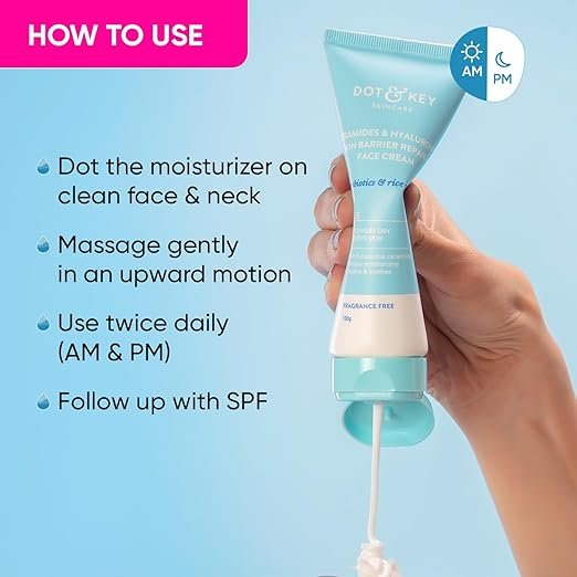 Dot & Key Ceramides Moisturizer with Hyaluronic for Intense Moisturizing and Skin Strengthening | With Probiotic & Rice Water I Barrier Repair Cream | For Dry Skin, Normal Skin & Sensitive Skin | 100g