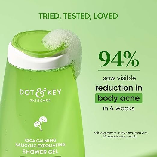 Dot & Key Cica & 1% Salicylic Daily Exfoliating Shower Gel | Niacinamide Infused | Body Wash for Oil & Acne Control | Reduces Body Acne & Smoothes Irritation | Clean, Acne Free Skin | 250ml