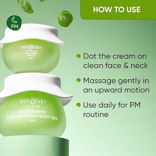 Dot & Key CICA Calming Skin Renewing Night Gel | For Oily, Acne Prone And Sensitive Skin | Night Cream with Niacinamide, Green Tea & Hyaluronic | Fades Blemishes & Dark Spots | 60ml
