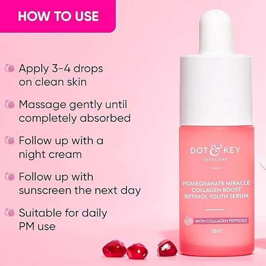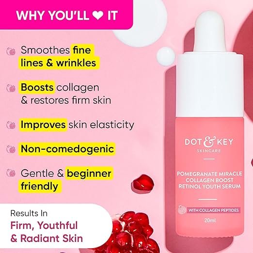 Dot & Key Pomegranate & Retinol Anti Ageing Serum for Face| Boosts Collagen | Reduces Fine Lines & Wrinkles| For Mature, Combination & Dry Skin | Fights Signs of Ageing, 20ml