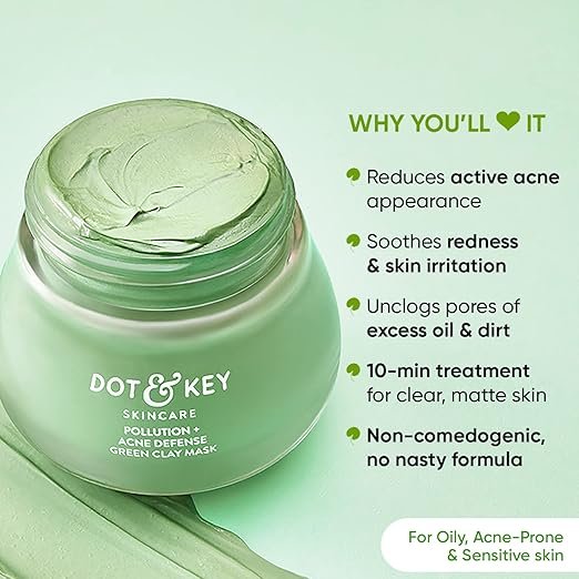 Be the first to review “Dot & Key Skin Care Pollution + Acne Defense Green Clay Mask | Clay Mask for Face with Salicylic & Matcha Tea | Reduces Active Acne, Soothes Redness | For Dark Spots, Oily, Acne Prone Skin | 85g” Cancel reply
