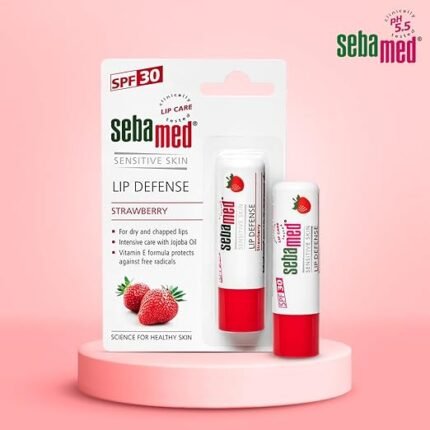 Sebamed Lip defense 4.8gm, Strawberry | SPF 30 |Lip balm for Dry & Chapped lips with natual oil & Vitamin E | UV protection | Dermatologically tested