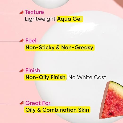 - LIGHTWEIGHT, NON-STICKY, ZERO WHITE CAST FOR ALL SKIN TYPES: Watermelon Hyaluronic Cooling Sunscreen SPF 50 PA+++ is Lightweight, fragrance-free, and colour-free sunscreen with gel cream texture that provides full absorbency with zero white cast and does not clog the pores, suitable for all skin types. Whether you’ve normal skin, dry skin, oily skin, combination skin, or even sensitive skin were safe for you; Paraben-free, Cruelty-free.
