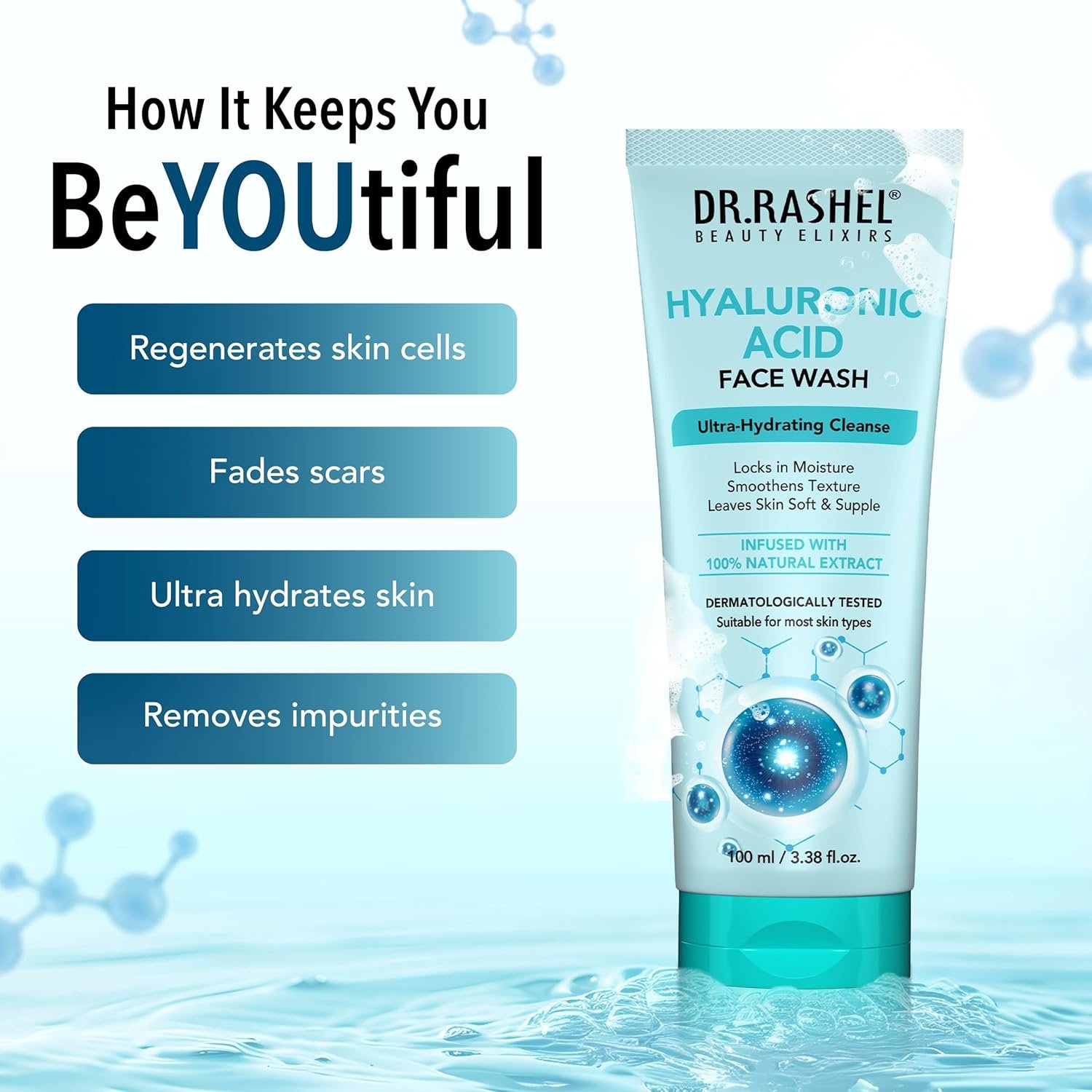 DR.RASHEL Hyaluronic Acid Face Wash For Men & Women Concentrate for Deep Cleansing & Clove Purifying Face Wash With Natural Ingredients Suitable For All Skin Oily to Normal – 100 ML