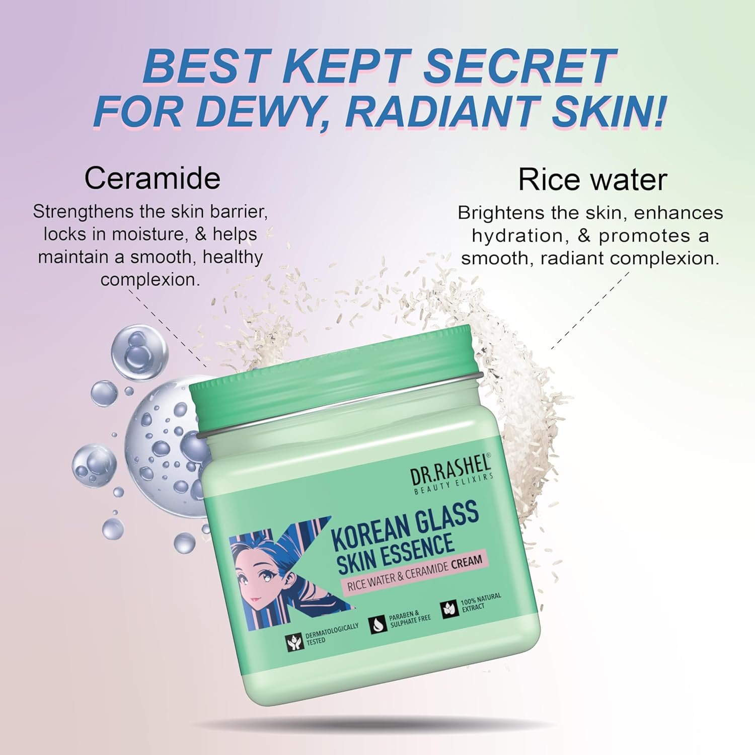DR.RASHEL Korean Glass Skin Essence Cream | With Hyaluronic Acid Niacinamide & Antioxidants | Lightweight Nourishing Formula | Youthful Clear & Radiant Complexion | 380ml