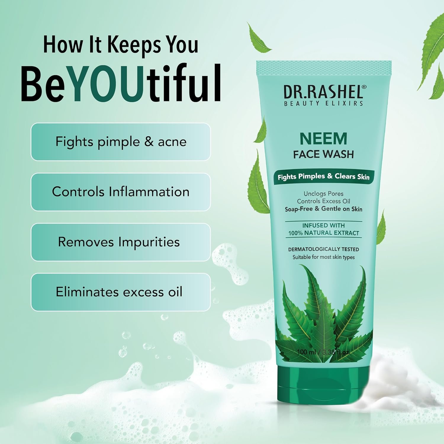 DR.RASHEL Neem Face Wash For Men & Women Concentrate for Deep Cleansing & Clove Purifying Face Wash With Active Neem Slices And Natural Ingredients | Anti-Bacterial | Anti-Fungal – 100 ML