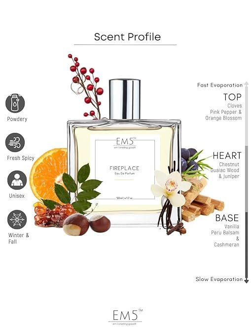 EM5™ Fireplace Perfume for Men and Women | Woody Vanilla Balsamic | Unisex EDP Strong and Long Lasting Spray | Luxury Gift for Men/Women