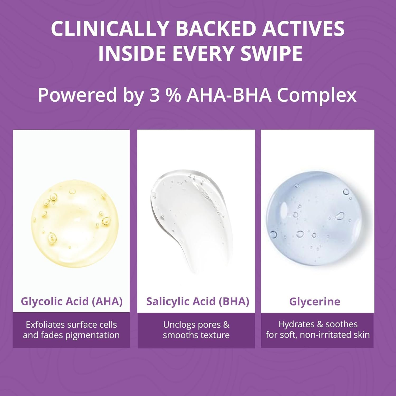 - Exfoliates and Brightens: Reduces pigmentation and smoothens skin with AHA, BHA and PHA.