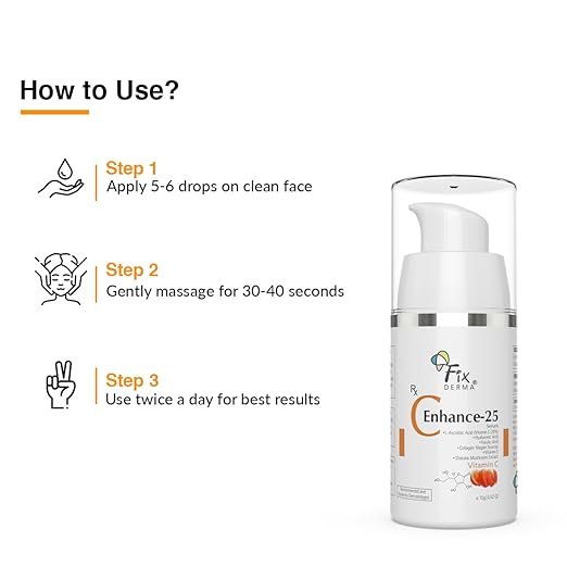Fixderma 25% Vitamin C Serum for Face, C” Enhance for Glowing Skin, Anti Aging Face Serum for Unisex Reduces Fine Lines, Wrinkles & Age Spots, Skin Brightening & Lightening for Face, 15ml