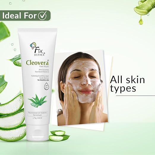 Fixderma Cleovera, Aloe Vera Face Wash with Vitamin E | Aloe Vera Gel for Face | Face Wash & Face Cleanser | Face Wash for Dry Skin (All Type Skin) | Face Wash for Women & Men – 75g