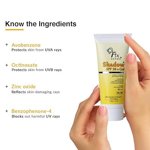 FIXDERMA Shadow Sunscreen Spf 30+ Pa+++ Gel|Sunscreen For Oily Skin, Body&Face|Sun Screen Protector Spf 30|Broad Spectrum Sunscreen For UVA&UVB Protection|Women & Men|Non Greasy&Water Resistant-40Gm