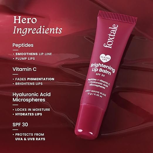 Foxtale Brightening SPF30 Lip Balm with Peptides, Vitamin C & Hyaluronic Acid | Brightens Lips | Reduces Pigmentation | Hydrates Lips | SPF Lip Balm | Tinted Lip Balm – Light Mauve Glaze 12gm