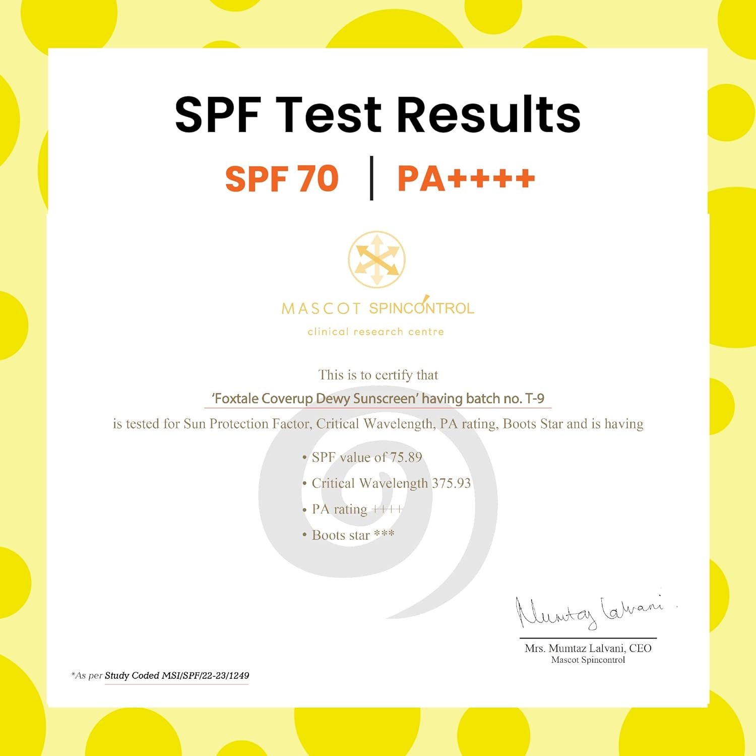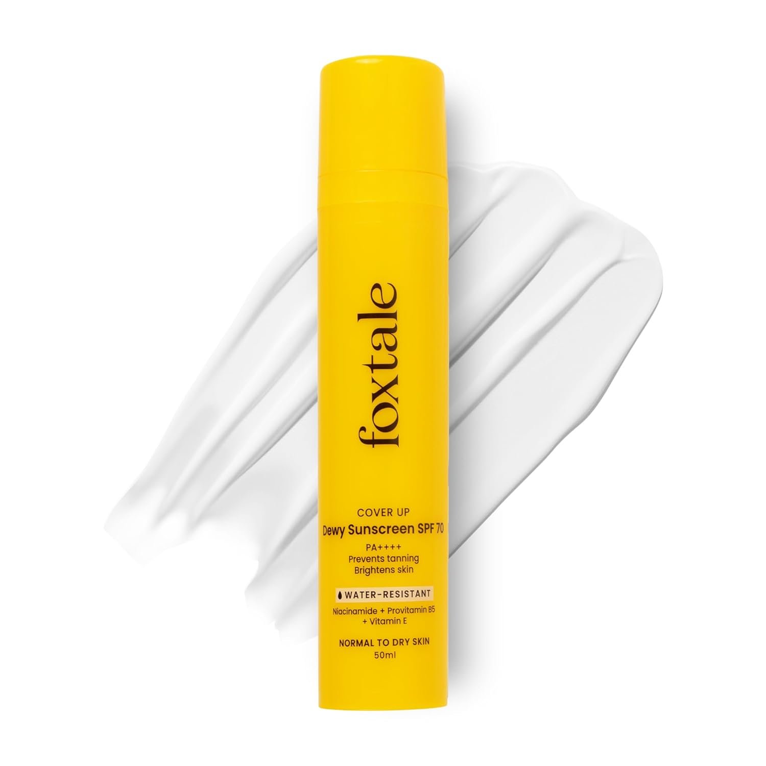 Foxtale SPF 70 Niacinamide Dewy Sunscreen with PA++++ For Dewy Sun Protection|Prevents Tan|Lightenweight, Non Greasy, No White Cast|Anti-Tan Formula|For Men & Women|For all skin type,50 Ml