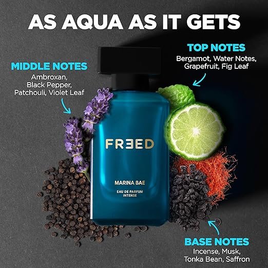- FRESH AQUA: Take a dive in the ocean with Freed’s Marina Bae, a fresh aqua saffron & mint with addictive notes of fig leaf & grapefruit accents. It’s an explosive, sensual smell.