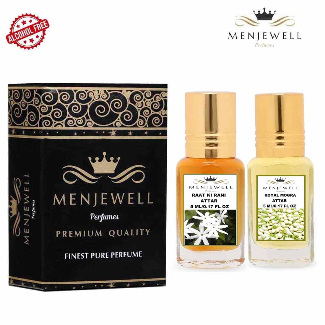 Menjewell Floral Raat Ki Rani & Mogra Liquid Attar Combo For Men & Women (Pack Of 2) 5Ml