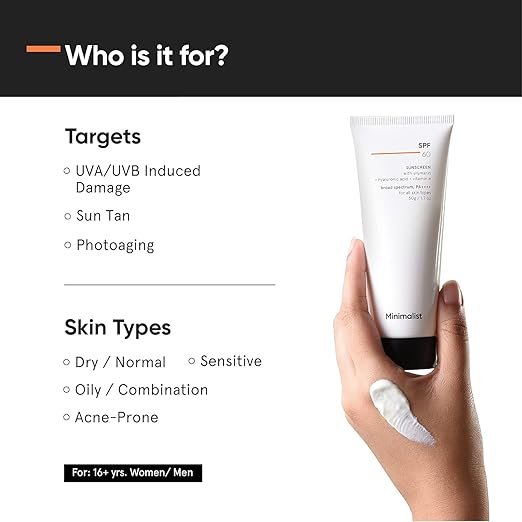 Minimalist Sunscreen SPF 60 PA ++++ | Pregnancy Safe | For Sensitive Skin | Broad Spectrum Sunscreen SPF 50+ With Potent Antioxidants & Advanced Filters | No White Cast, Non Irritant | 50 gm