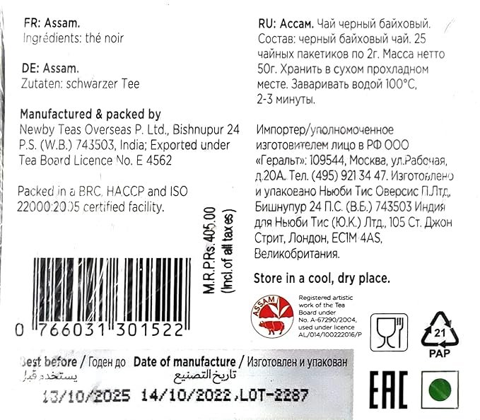 Newby Assam Black Tea Bags | 25 Counts | Premium Blend | Bold, Malty Flavor, Perfect for Revitalizing Breakfast | 50 gm