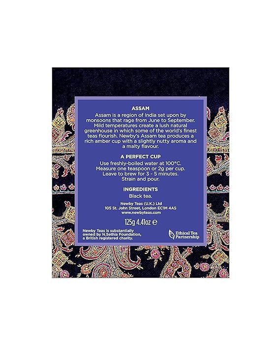 - The tea is perfect for those who admire strong taste and aroma. Each cup of Newby’s Assam loose leaf tea will leave you refreshed and energetic as the tea is made from the leave carefully plucked from the generations old tea garden of Assam.