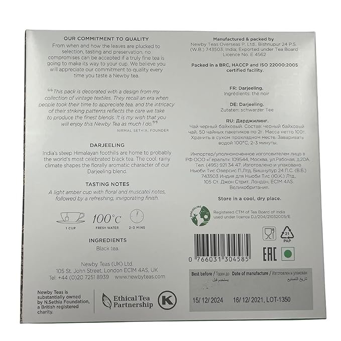 - Experience the tradition and luxury of Darjeeling with Newby’s expertly crafted tea bags, perfect for both a rejuvenating morning start and a serene afternoon tea.
