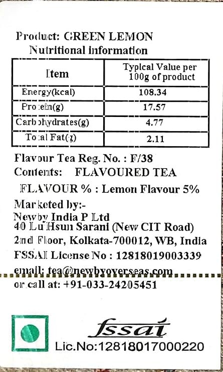 - Newby’s Green Lemon fine blend Tea presents a gentle aroma of freshly cut grass and a zesty yet gentle flavour.
