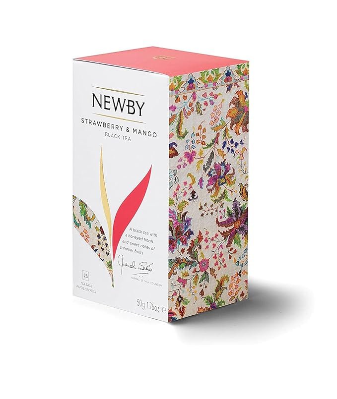 Newby Strawberry and Mango Black Tea, 25 Biodegradable Tea Bags | With Sweet & Sour Notes of Mango & Strawberry | Hot & Cold Tisane | 50g