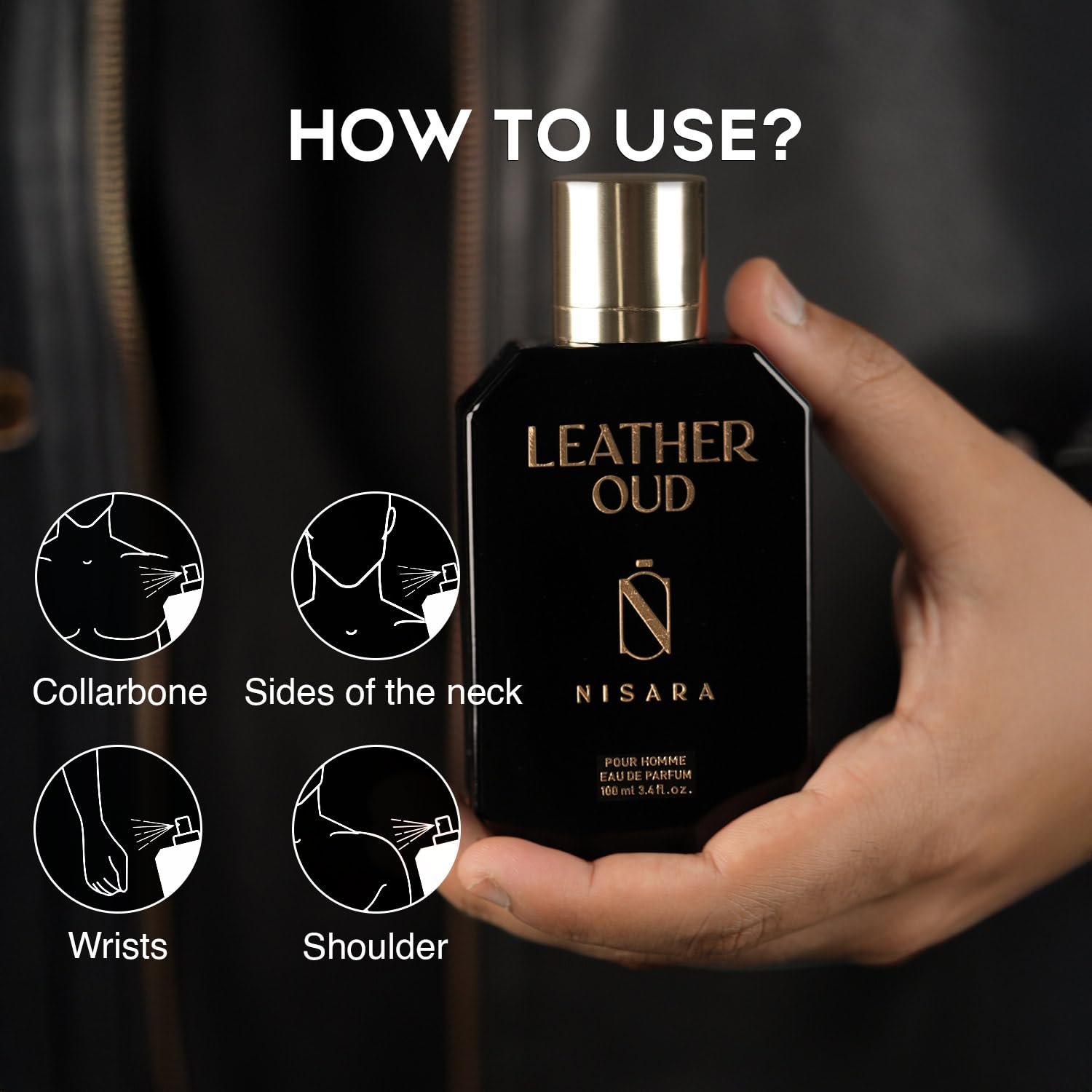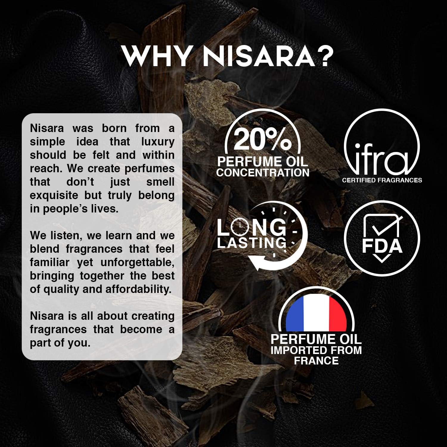 Nisara Leather Oud Perfume For Men 100 ml | Long Lasting Eau De Parfum | Spicy- Leather Fragrance | With Leather, Oud, Sandalwood, Amber, Saffron, Bergamot Notes | EDP Scent Spray for men | Premium Perfume For Him