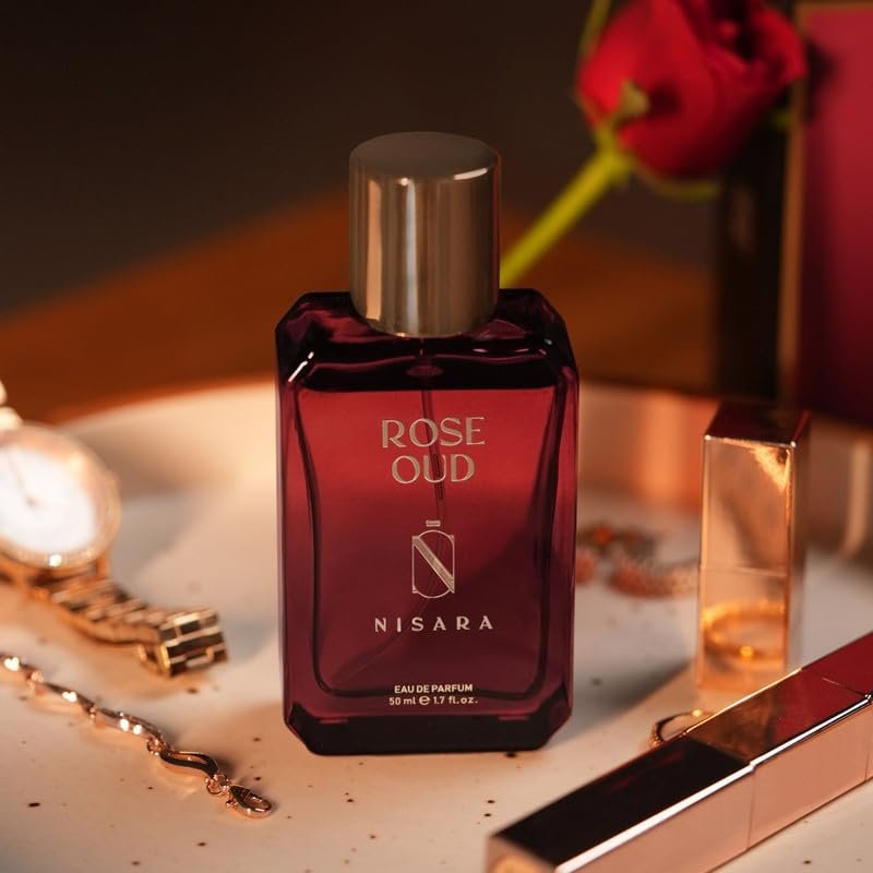 Nisara Rose Oud Unisex Perfume for Men and Woman – 50 ml | Long Lasting Eau De Parfum | Rose-Amber Fragrance with Rose,Pear,Oud,Amber, Musk | EDP Scent for Men and Woman|Premium Perfume For Him & Her