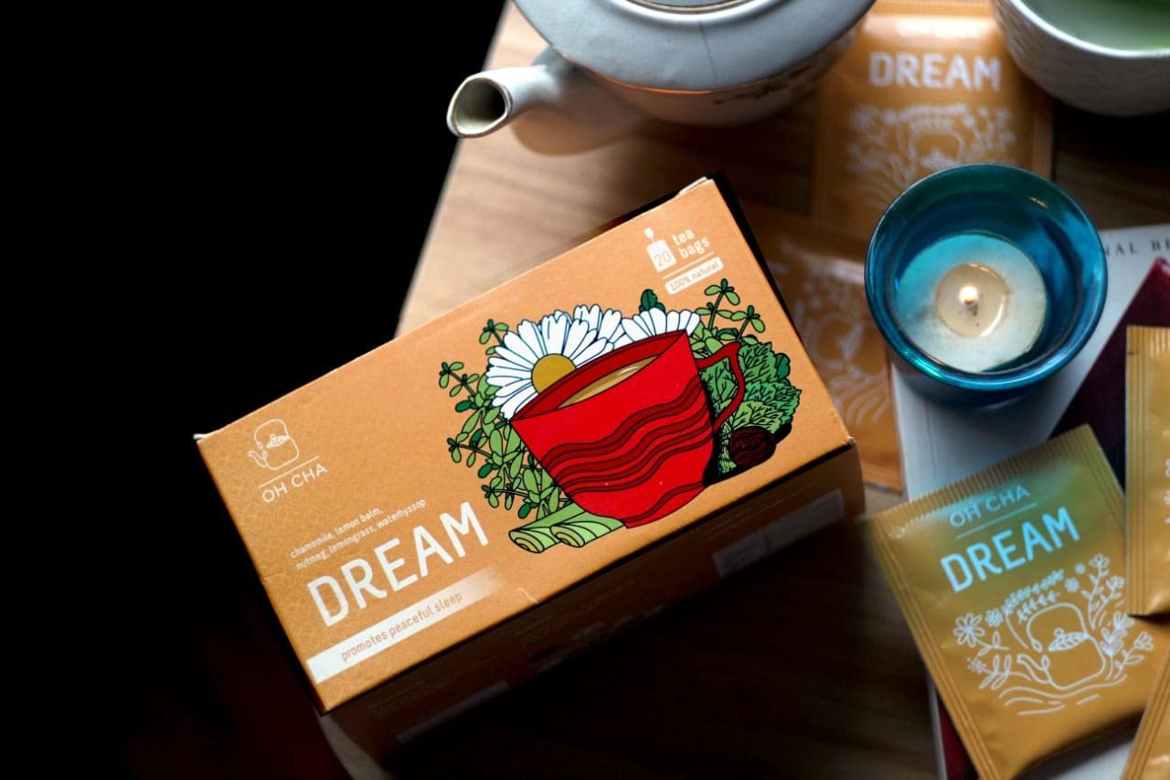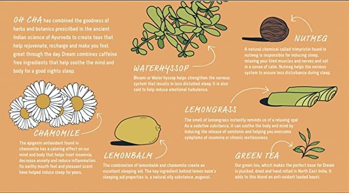 OH CHA – Chamomile Tea Bags, Dream | Natural Sleep Tea with Chamomile, Waterhyssop, Lemon balm, Lemongrass, Nutmeg | 100% Natural Green Tea bags | Relaxes the Mind | Chamomile Tea for Sleep | 20 Tea Bags