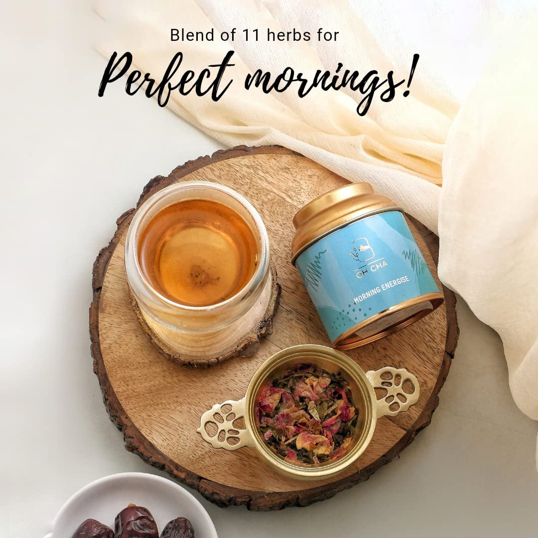 OH CHA – Green Tea, Morning Energise | Blended with 11 Magical Herbs, 100% Natural | Garden Fresh Whole Leaf Green Tea | Wellness Tea, Helps in Digestion, Metabolism, Weight Management | 35g Tin Caddy